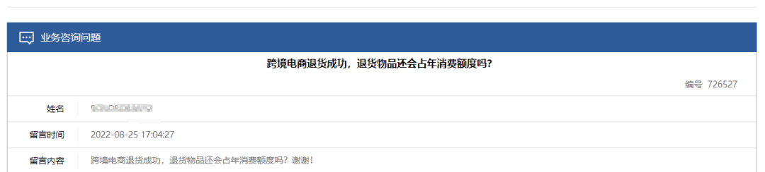 问:跨境电商退货成功,退货物品还会占年消费额度吗?谢谢!